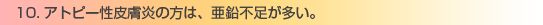 以前から、アトピー性皮膚炎の患者さんたちの亜鉛が少ないことは、ある皮膚科の医師からの情報で知っていました。実際測定してみると確かに60とかそれ以下の患者さんもいましたが、基準値に入っている人もいました。亜鉛不足の評価の方法はむずかしいです。